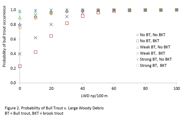Technical Background: Several contributing factors have led to the decline of bull trout populations in streams of the US Pacific North West where bull trout are listed as threatened (USFWS, 1998). Non-native fish, such as brook trout, compete with bull trout for food and other resources (Rieman and McIntyre, 1993). Increases in road densities and the presence of barriers, which reduce effective network size, can isolate populations and create unsustainably small populations (Dunham and Rieman, 1999). In addition anthropogenic habitat degradation and fishing exploitation have led to declines in bull trout populations.