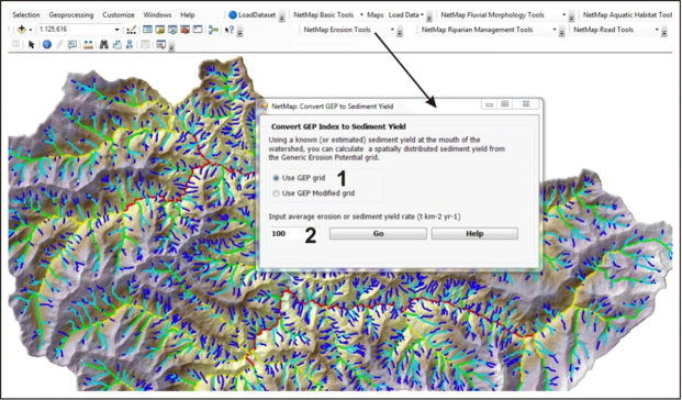 Parameter Description: NetMap’s Generic Erosion Potential (GEP) can be converted to sediment field (t/km2/yr) based on a given a basin mean annual sediment yield.