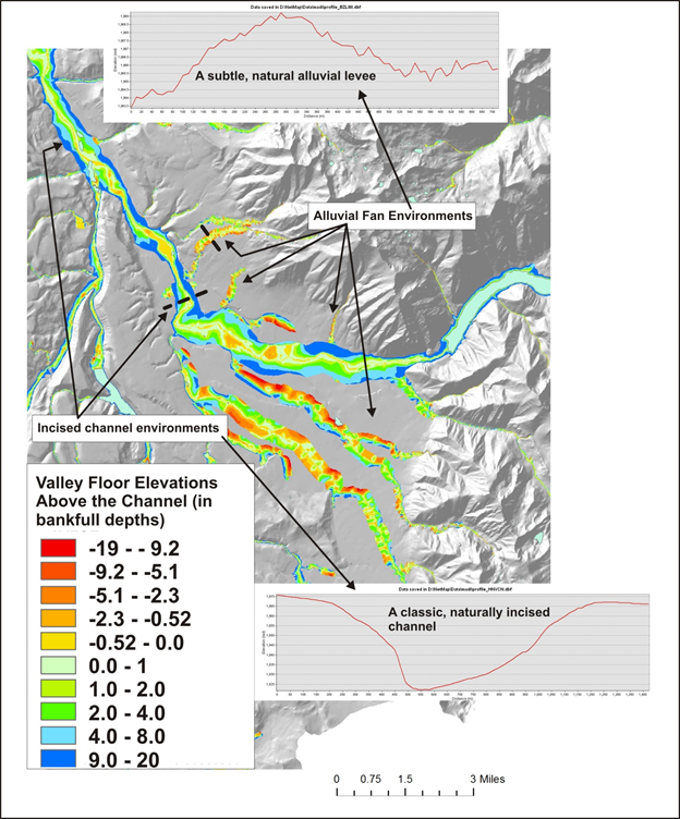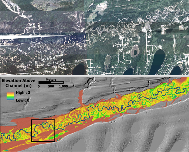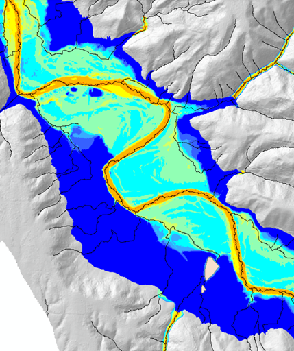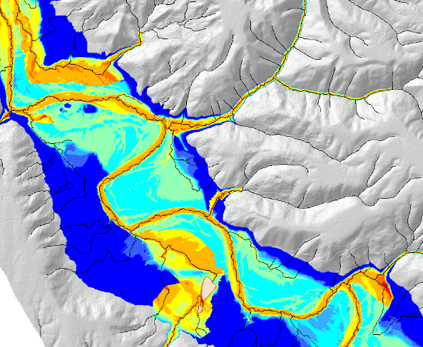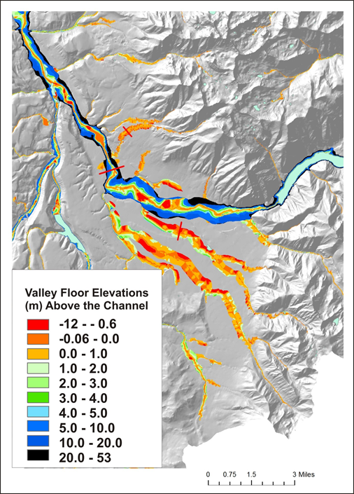 FIgure 4. Mapping valley floor elevations and areas prone to avulsions and migration (e.g., channel migration zones) in the Matanuska-Susitna watershed in southcentral Alaska using NetMap tools.