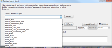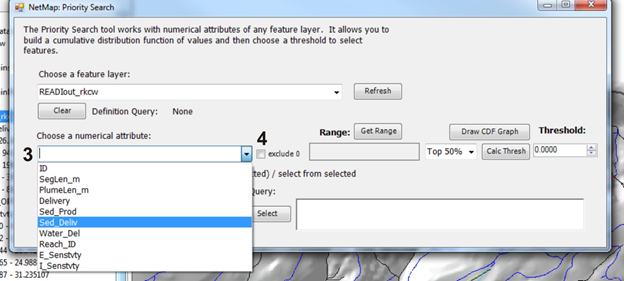 NetMap calculates the full cumulative distribution of any attribute in the Virtual Watershed datasets and thus a user can quickly search for and locate any specified portion of the distribution, such as the highest 1%, highest 5%, or highest 10% etc.