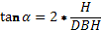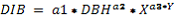 Hibbs equation does not work for trees that are less than 1.37 m (4.5 ft) in height; in this case, the DIB is assigned to the stand table DBH. The original equation is calculated for US customary units, so when calculated in RSWM, DBH, h, and H are converted from SI to US customary (Table 1).