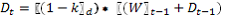 Wood decay (kd) is commonly calculated using an exponential decay factor such that kd = ek (Harmon et al., 1986). Decayed wood (D) is calculated by applying the decay rate (kd) to the number of pieces or volume of wood (W) for year t-1 and for the decayed wood from previous years: