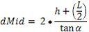 D2 and dMid are calculated by inserting at h, (h+L) or (h + (L/2)) respectively into Equ.6 as seen in the cone equations (Equ.4).