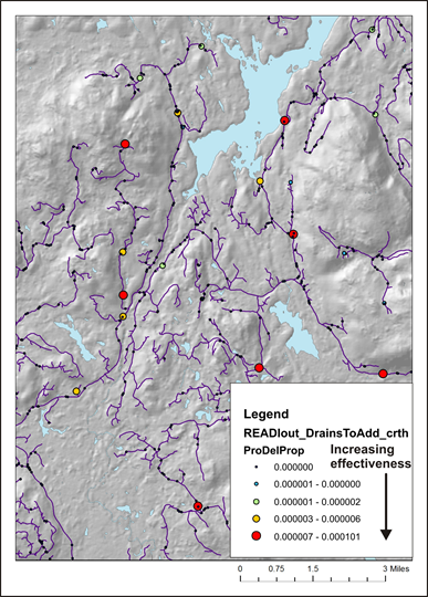 READIout_DrainsToAdd_ID = Select those you want to use to rerun the simulation, they are sorted in the attribute table by effectiveness (at reducing road sediment delivery);