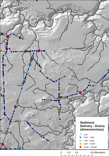 Figure. Starting drains either using the model, or loaded Figure. Predicted sediment production.