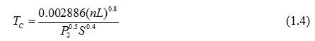 NRCS Technical Release 55 (1986) provides an equation for estimating time-to-concentration (TC) for sheet flow derived using a kinematic wave approximation for flow velocity: