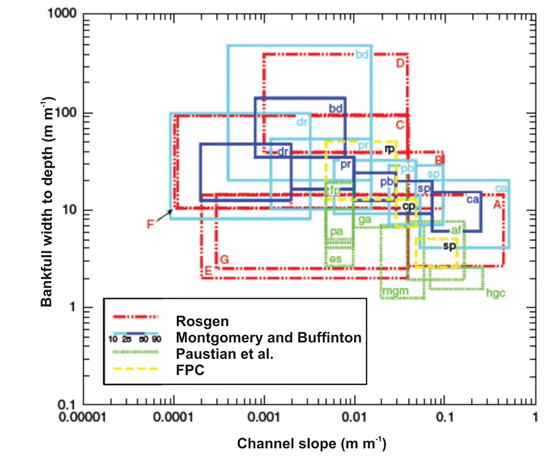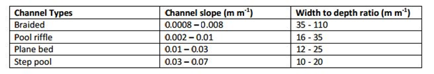 Table 1. Buffington and Montgomery (2013) channel types defined by channel slope and width to depth ratios.