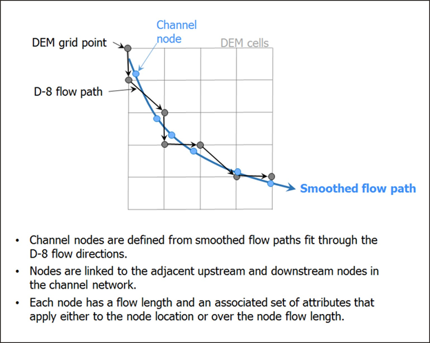 Node Based Stream Layer in NetMap: Representing synthetic stream networks at the spatial grain of the digital elevation model (DEM).