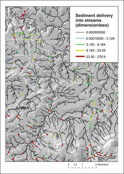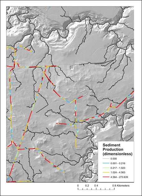 Figure. Starting drains either using the model, or loaded Figure. Predicted sediment production.
