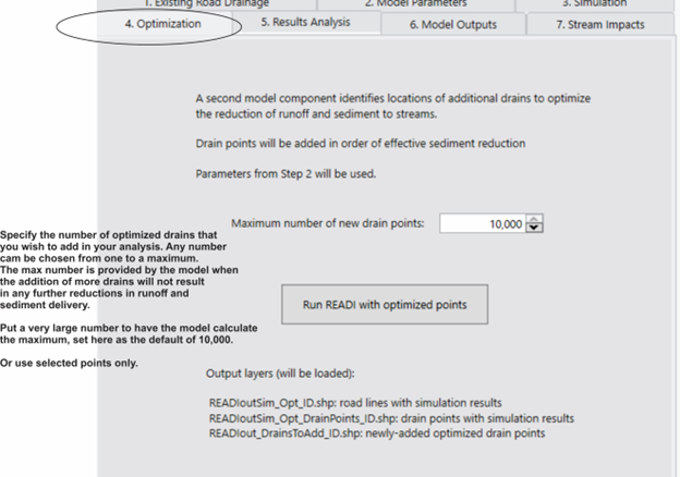 When you run the READI Optimization Module (for strategically locating new drains to maximize sediment reduction effectiveness, here